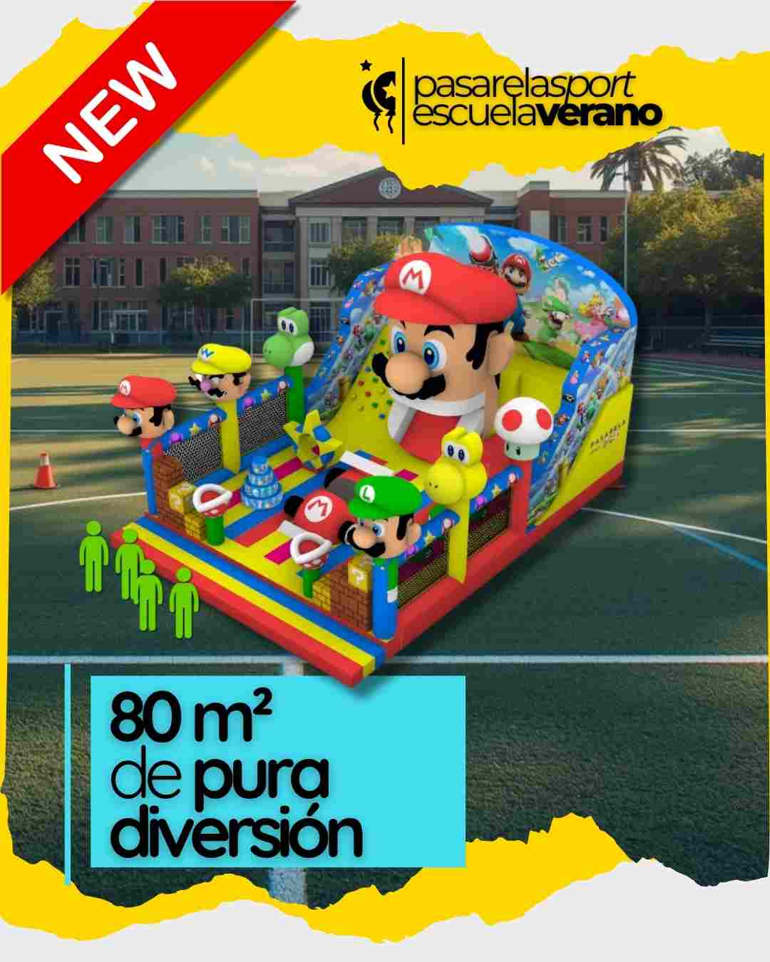 Un hinchable gigante ambientado en el universo de Mario, pensado para saltar, reír y no parar.